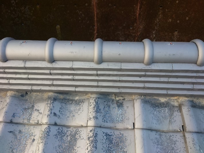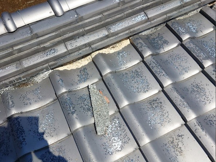 - 棟の漆喰が剥がれている/欠けている/黒ずみ・苔が目立つ