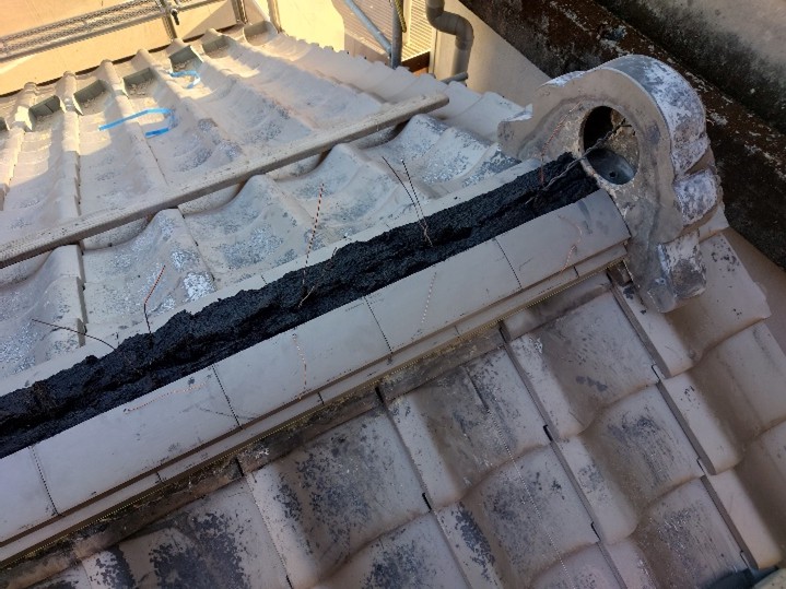 - A. ひび割れや脱落が進み、台風時の瓦の浮き・ズレ・雨漏りに発展する恐れがあります。